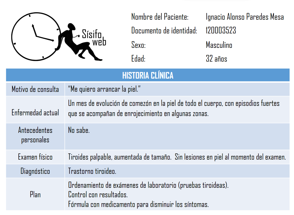 “Tiene la tiroides aumentada de tamaño y estoy casi segura de que ese es el origen de todos esos síntomas que refiere. Hágase estos exámenes y verá que…”
